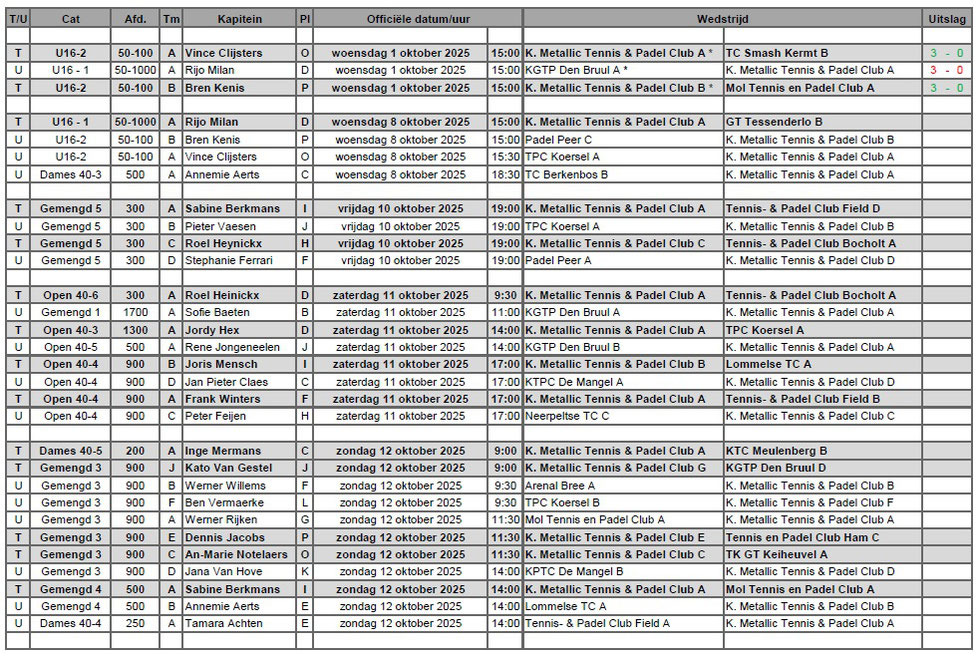 De wedstrijden worden op TC Hechtel-Eksel gespeeld volgende zaterdagen